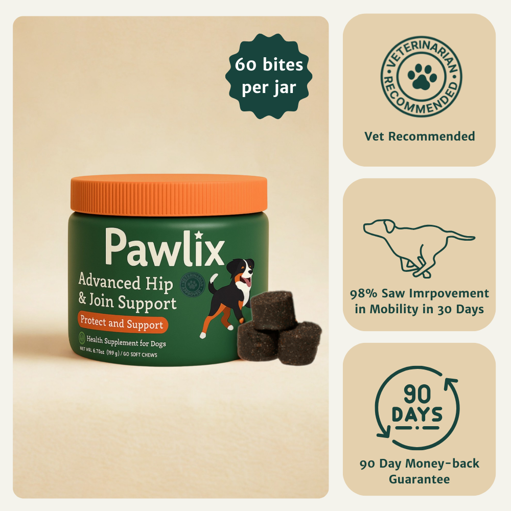 Our lad’s a pocket rocket — zoomies every night — then he’d stiffen and flop. Two weeks on Pawlix and he recovers faster, no limping after the big chase, and he still thinks the chew is a treat. Exactly what we needed for an over-excited youngster.