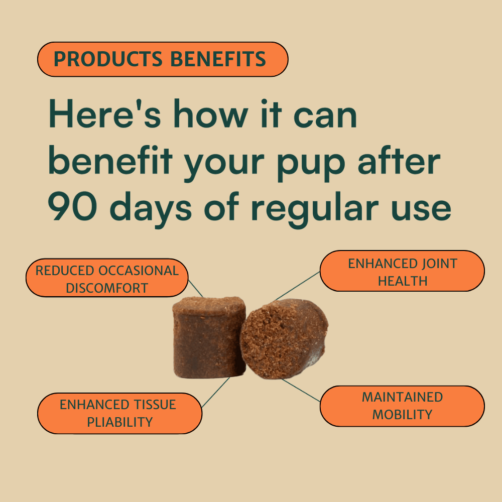 Vet nurse mentioned daily joint support and we chose Pawlix because it looked straightforward. It really is: one chew, no fuss, no crumbs, no weird smell, and she treats it like a biscuit from gran. We’ve ordered the bigger tub.